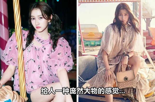关晓彤就是太爱穿少女装了,但是她腿又特别长,就让人感觉这个少女好大只啊,然后就会觉得,她特别壮。其实她瘦的很,但这么穿太吃亏了。